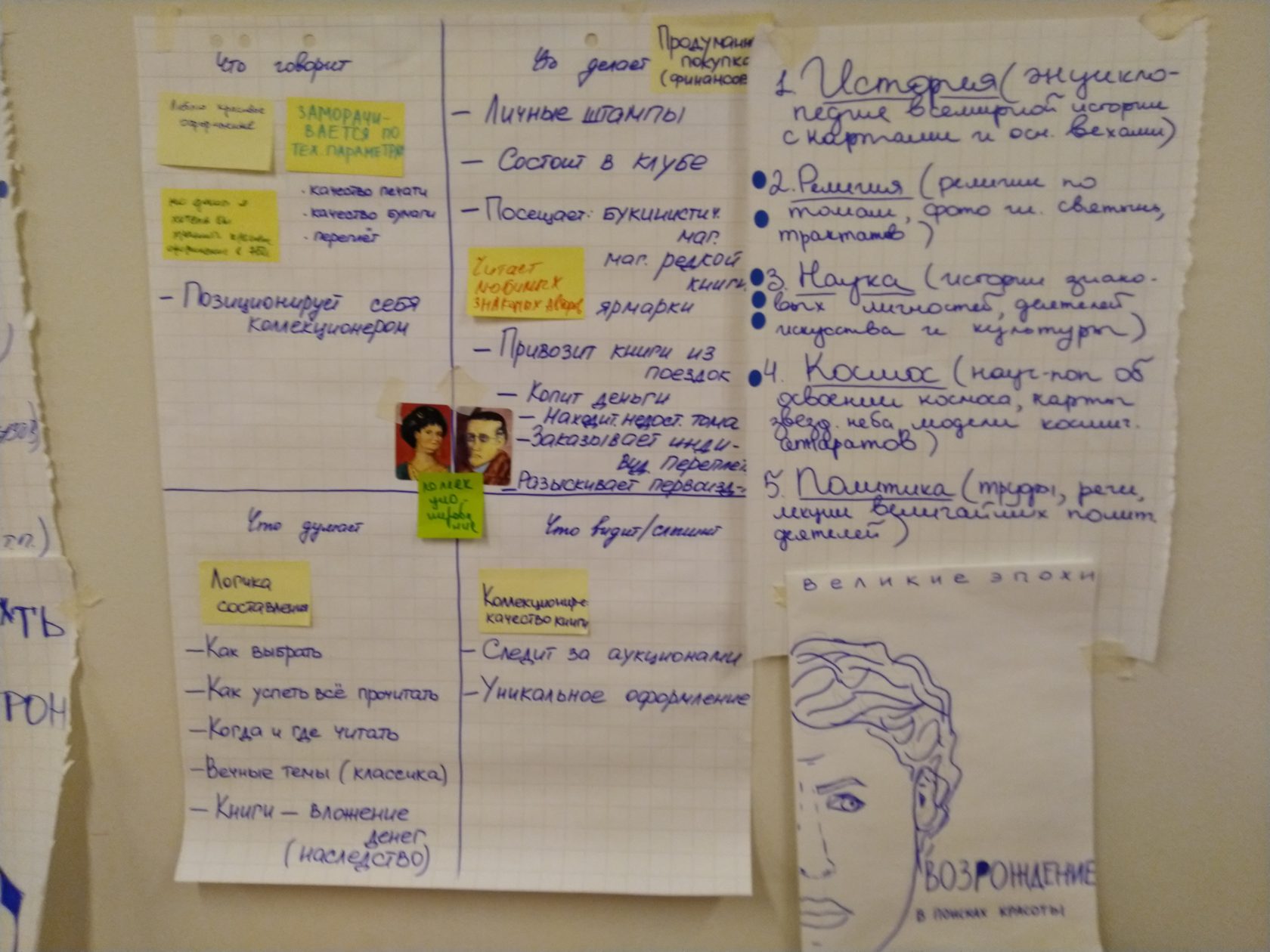 2.Распаковка. Заполните все четыре квадранта стикерами с вашими записями особенностей пользователя по следующим категориям: